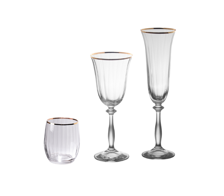 Verre à eau (30cl), Verre à vin blanc (25cl), Flûtes (19cl)