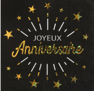 Serviette joyeux anniversaire noir et gold x10